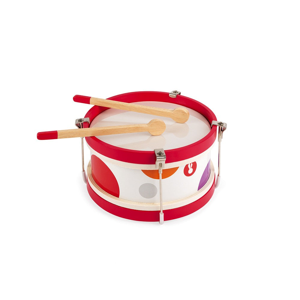 A partir de 2 años, los niños podrán experimentar con los sonidos y descubrir la música mientras adquieren confianza en sí mismos. Este tambor forma parte de nuestra gama Confetti: ¡una gama de instrumentos musicales de juguete con dibujos Pop N'Rock! Se incluyen dos baquetas. ¡El niño disfrutará muchísimo tocando como una estrella con su propio instrumento!